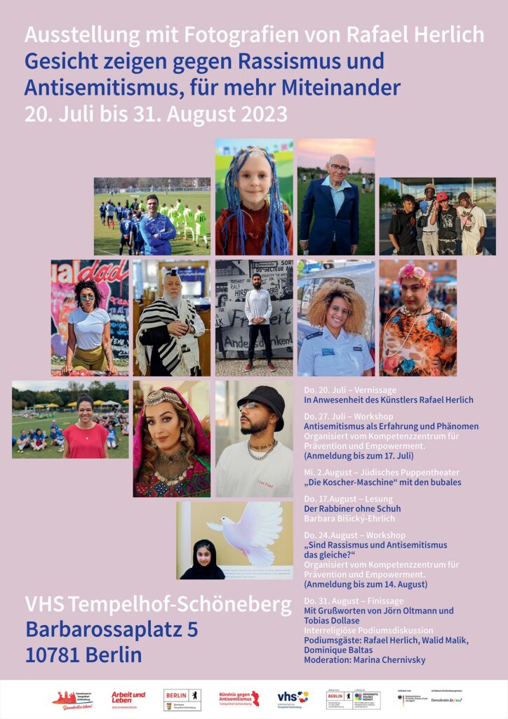 Die Ausstellung des deutsch-israelischen Fotografen Rafael Herlich zeigt 30 farbenfrohe Fotografien von Menschen verschiedener Altersgruppen, Religionen und Herkunft, die sich klar gegen Hass positionieren und selbst Ausgrenzung erfahren haben – auf Grund ihres Geschlechts, ihrer Religion, ihrer Herkunft, Behinderung oder sexuellen Orientierung. Herlich möchte mit seiner Arbeit zeigen, dass Menschen unterschiedlicher Hintergründe gemeinsam stark gegen Rassismus und Antisemitismus sein können. Die Fotografien sind hauptsächlich spontan entstanden und wurden unter anderem in Berlin, Straßburg, Frankfurt und Jerusalem aufgenommen. Die Ausstellung bietet einen Einblick in das jüdische Leben in seiner Vielfalt und setzt ein Zeichen für mehr Toleranz im Miteinander.