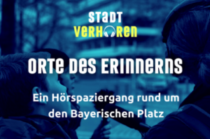 Der Hörspaziergang führt durch den Kiez rund um den Bayerischen Platz, unter anderem an die von den Künstler_innen Renata Stih und Frieder Schnock 1993 gestalteten “Orte des Erinnerns”, ein Flächendenkmal bestehend aus an Straßenschildern angebrachten Informationstafeln zur Verfolgung der Berliner Jüd_innen während der NS-Diktatur und soll daran erinnern, dass jeder dazu beitragen kann, etwas gegen Antisemitismus, Rassismus und Vorurteile zu unternehmen.