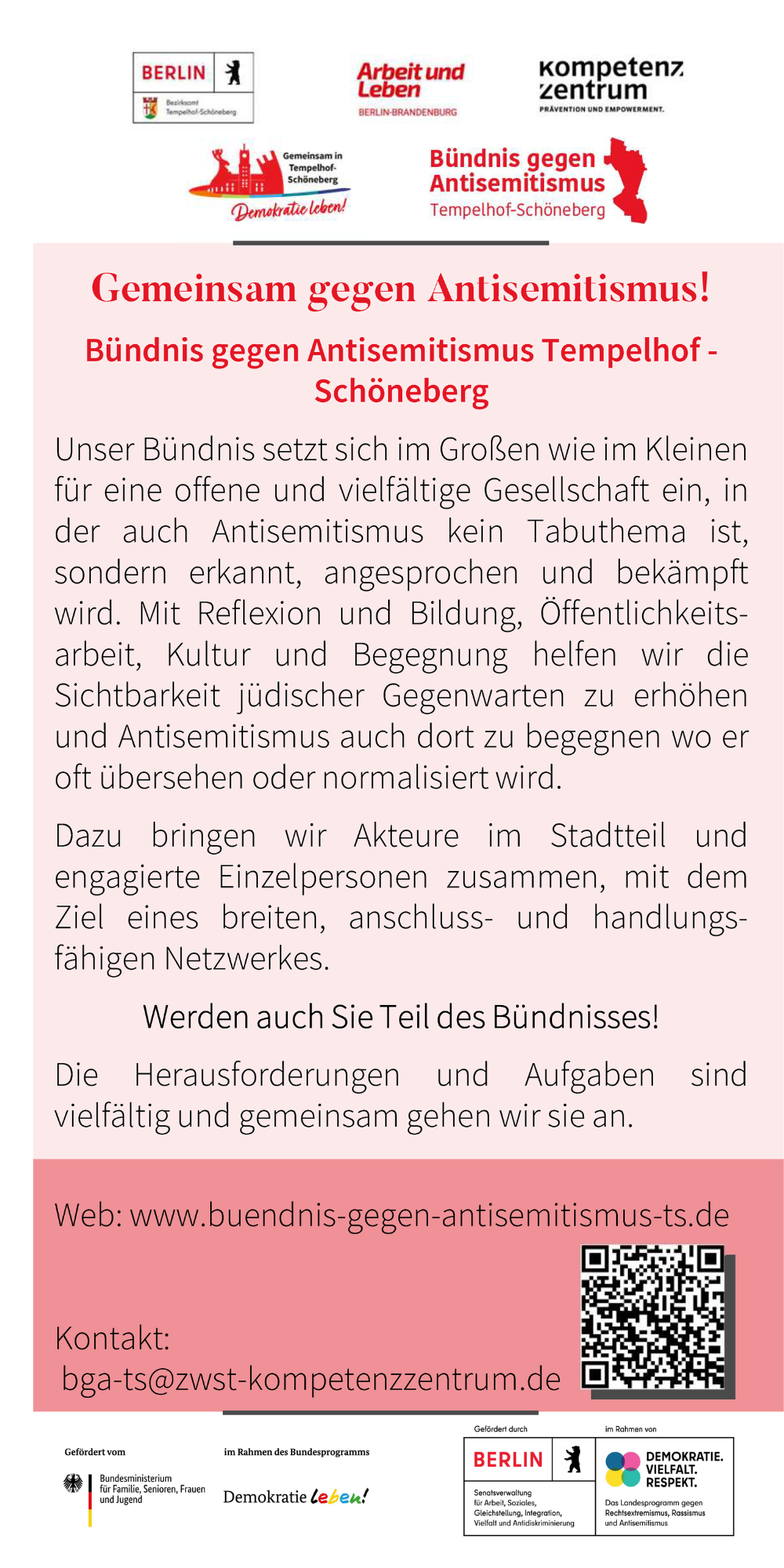 Ansprechpersonen für das Bündnis gegen Antisemitismus Tempelhof-Schöneberg